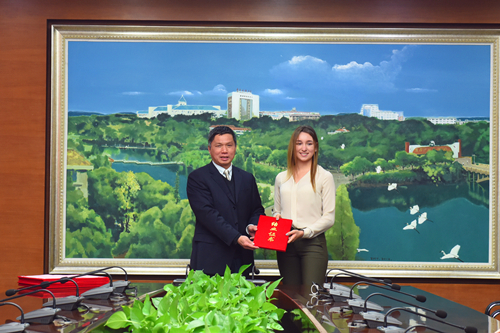 罗玉峰首先对俄罗斯交换生的顺利结业表示祝贺。他表示,三个月的时间虽然短暂,但是八位交换生的学习生活却十分丰富。他们积极融入交大文化、学习汉语及专业课程、参与各项活动。期间, “洋花椒”们还参加了国际龙狮邀请赛,他们很好地将赣文化与传统舞龙特色相结合,积极向国内外传播中国传统文化。同时,他们利用学校间搭建的宝贵交流平台,不但为自己增加精彩阅历,还为增进中俄两国间的友谊贡献自己的一份力量。罗校长欢迎未来更多的交换生来校交流。