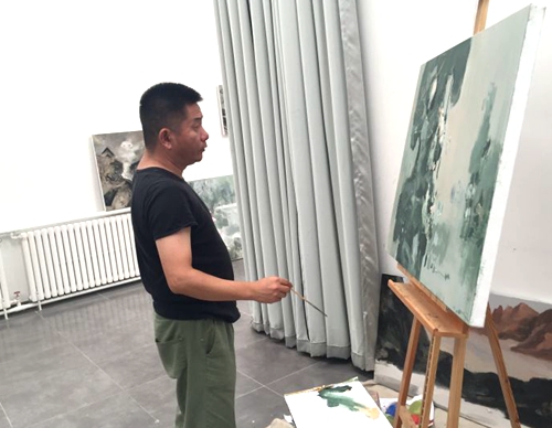 朱明弢在创作油画。