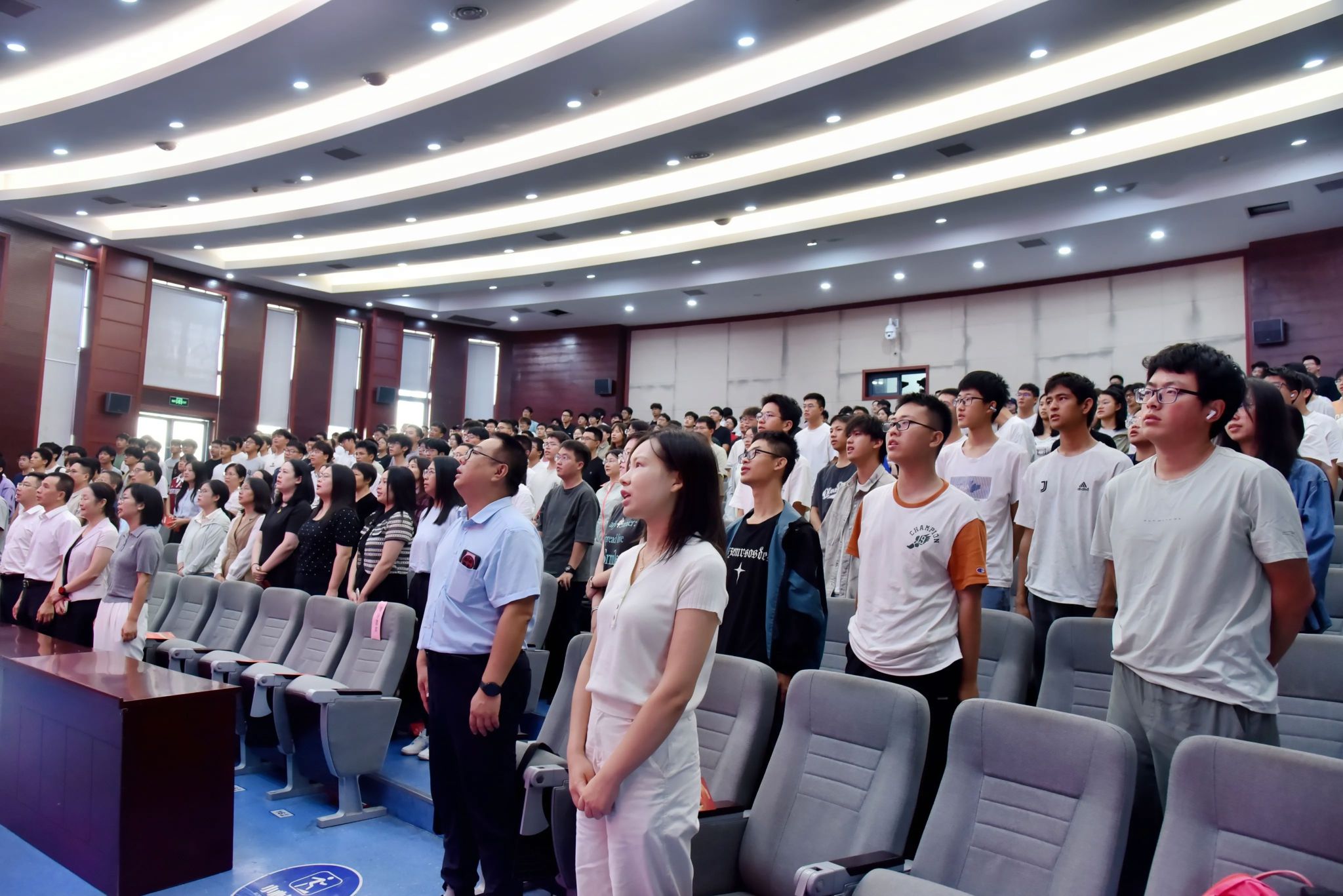 辅导员、思政课教师及大一新生代表共计300余人聆听思政课。(陈之香 摄)