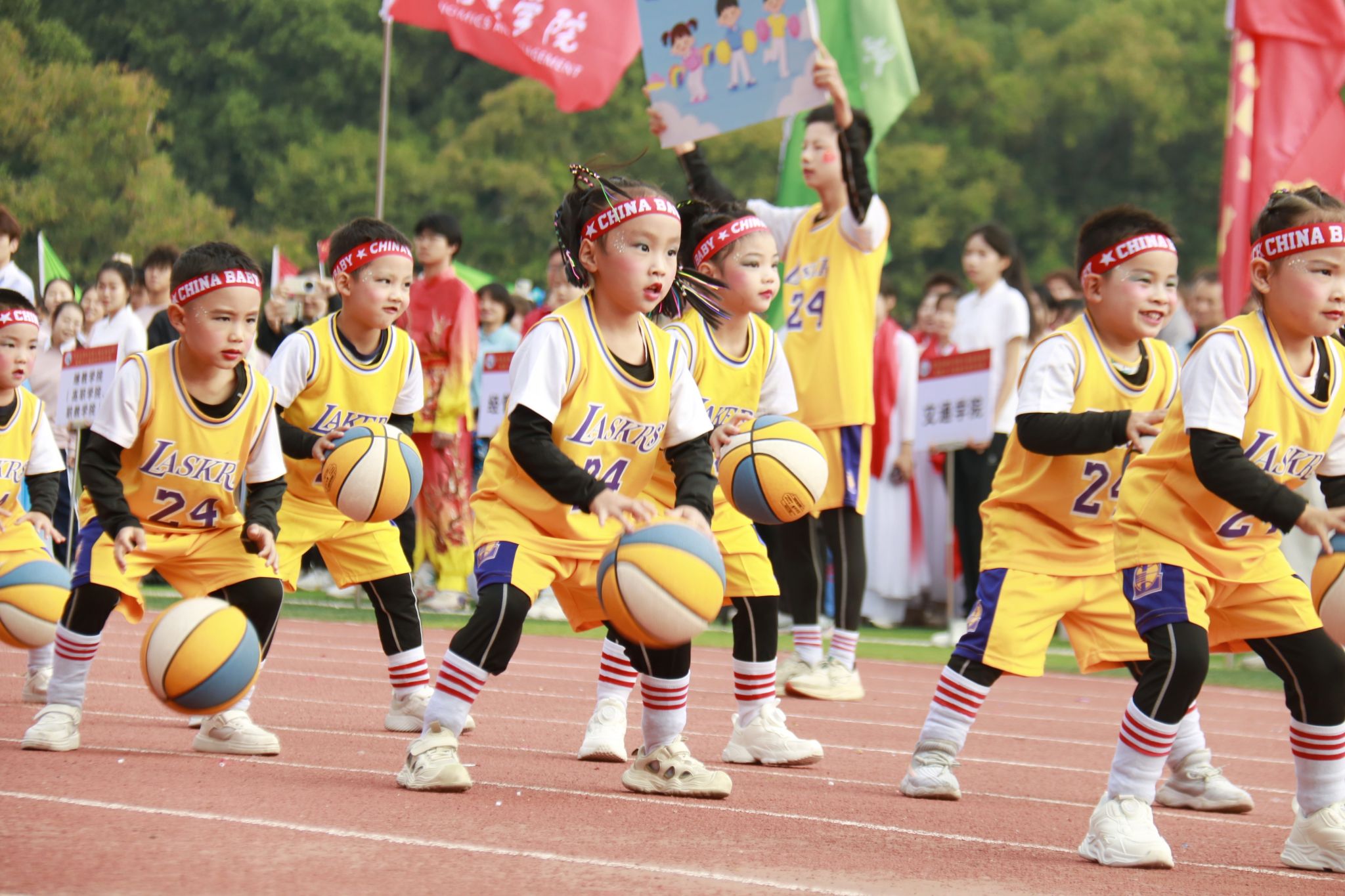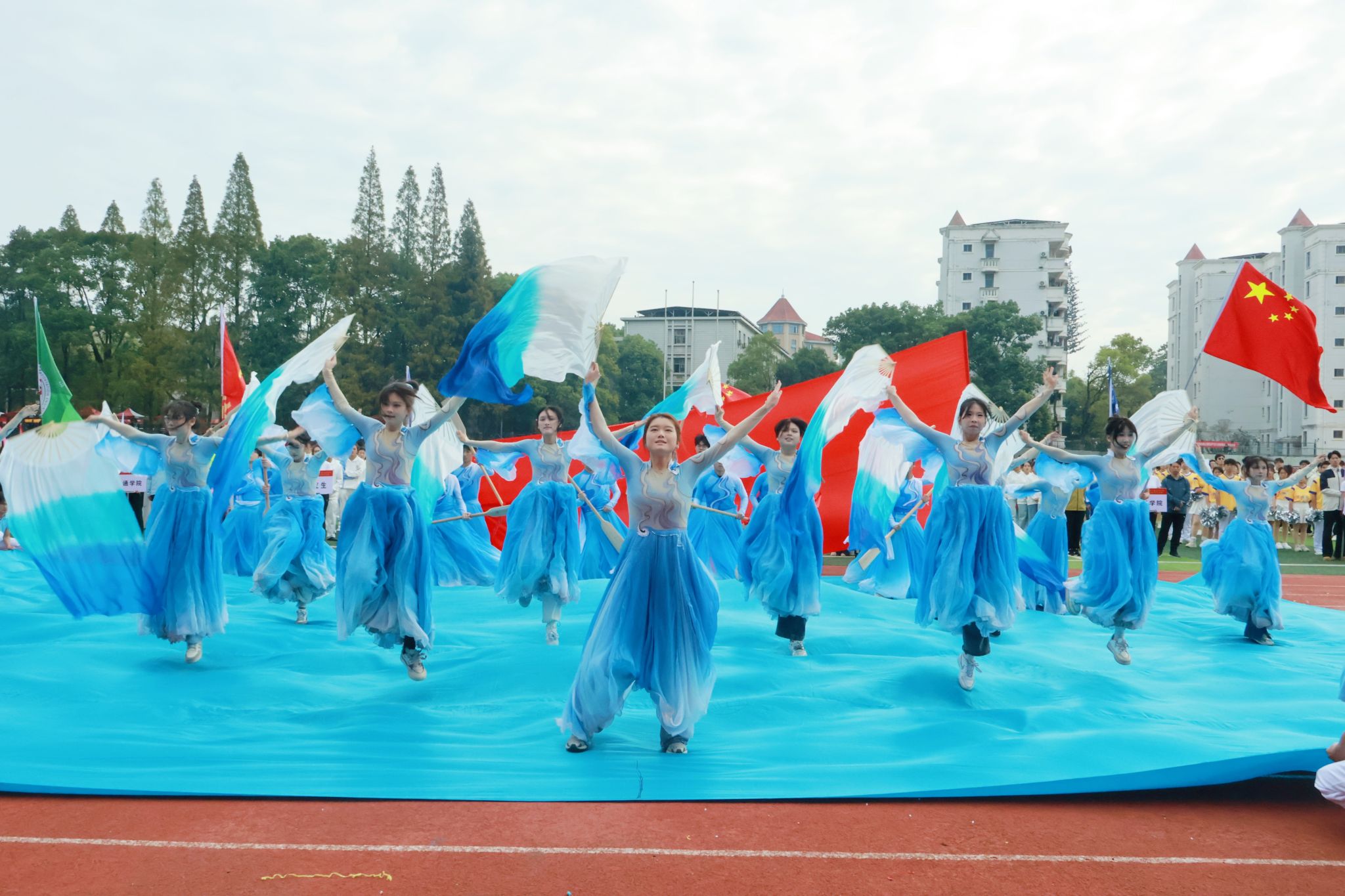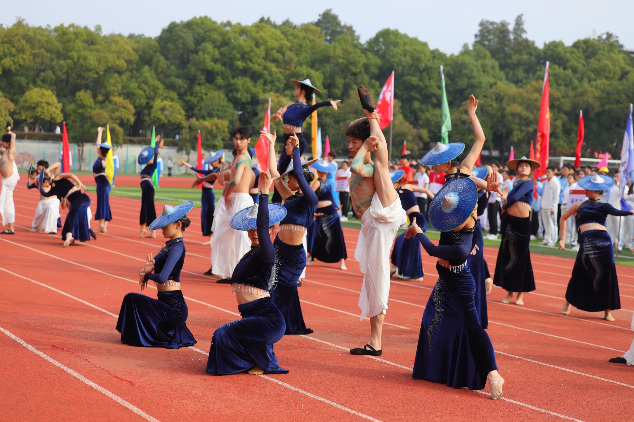 开幕式现场,19个方阵队依次登场,为全校师生献上了一场精彩纷呈的才艺盛宴。“奔向太阳,奔向梦想”,电气学院学生活力满满地演绎投篮、赛跑等运动场景,一帧一画尽显团结奋进、勇于拼搏的运动精神;艺术学院的表演者以刚柔并济的舞蹈赢来场上的阵阵喝彩——时而铿锵有力、迸发激情,时而温婉细腻、流转柔情,扎实的专业功底在举手投足间尽显;机关方阵队带来的舞蹈串烧,琵琶清越、鼓声深沉,舞蹈风格随之转换,展现机关人服务师生、担当奉献的精神风貌;志愿者方阵队的舞蹈热情洋溢、活力四射,整齐有序的队形变化中,尽显团结一心、甘于奉献的志愿本色。