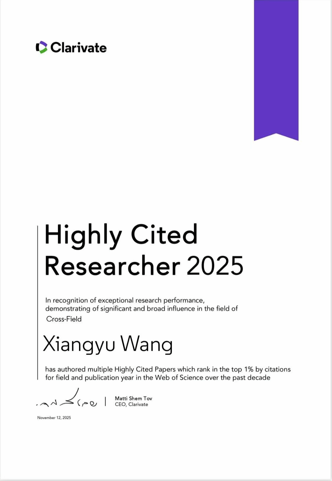近日,全球领先的专业信息服务提供商科睿唯安(Clarivate)正式发布2025年度"全球高被引科学家"(Highly Cited Researchers 2025)名单。我校王翔宇教授凭借在相关研究领域的卓越学术影响力入选,这是国际学术界对其科研成果的高度认可,也是学校在高水平人才培养与学科建设领域取得的重要突破。