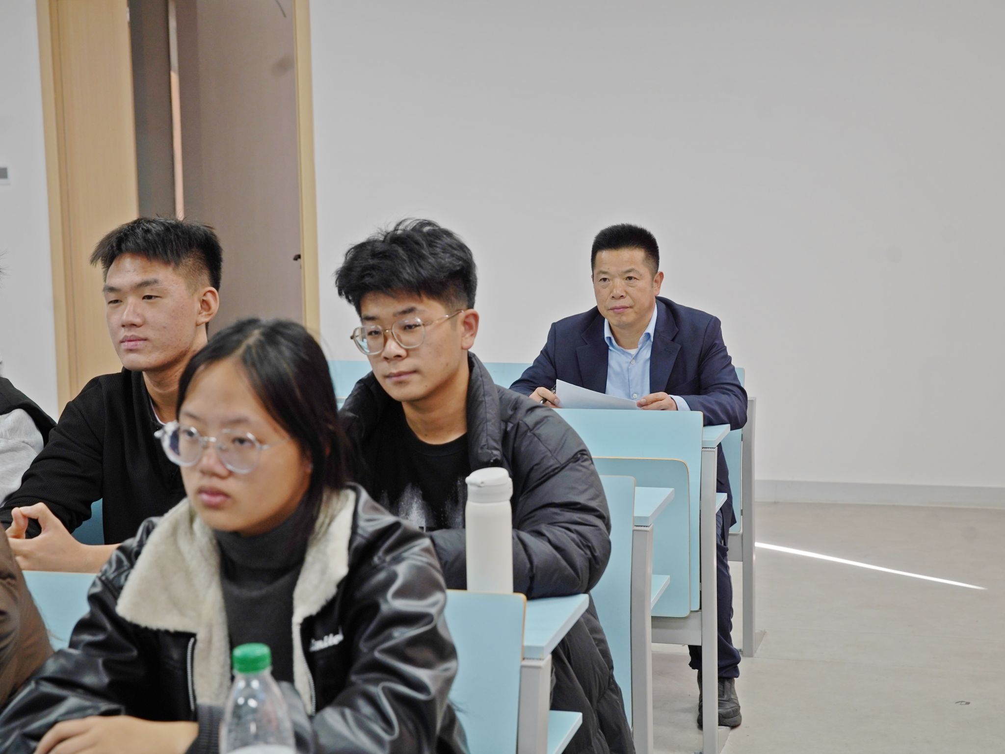 课堂上,徐长节认真听取上课内容,仔细记录教学要点,密切关注课堂互动与学生反应。授课教师逻辑清晰、内容详实、案例生动,课堂气氛活跃,展现了良好的教学风貌。