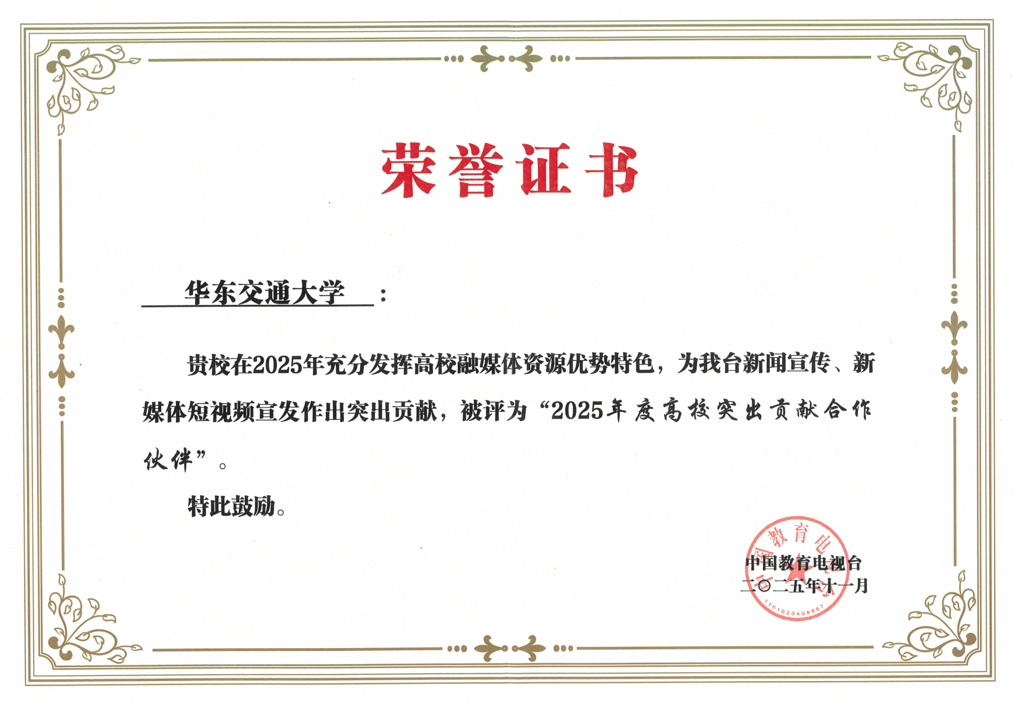 近日,中国教育电视台表彰了2025年度杰出、最佳、优秀合作伙伴,以及体教融合、高校突出贡献合作伙伴。我校再度蝉联“高校突出贡献合作伙伴”荣誉,成为全国六所获评高校中江西省的唯一代表,成功实现该项荣誉的三连冠。