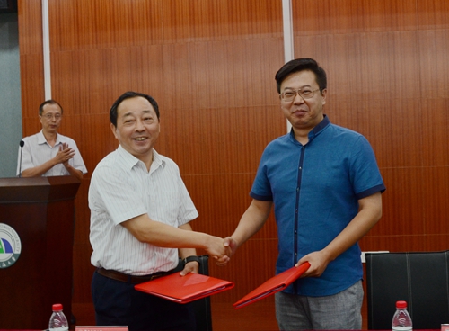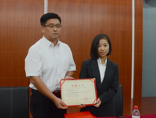 对外联络处处长罗侃、厦门触控未来科技有限公司总经理苏琳分别代表双方签订《北京触控未来科技有限公司和华东交通大学捐赠协议》。