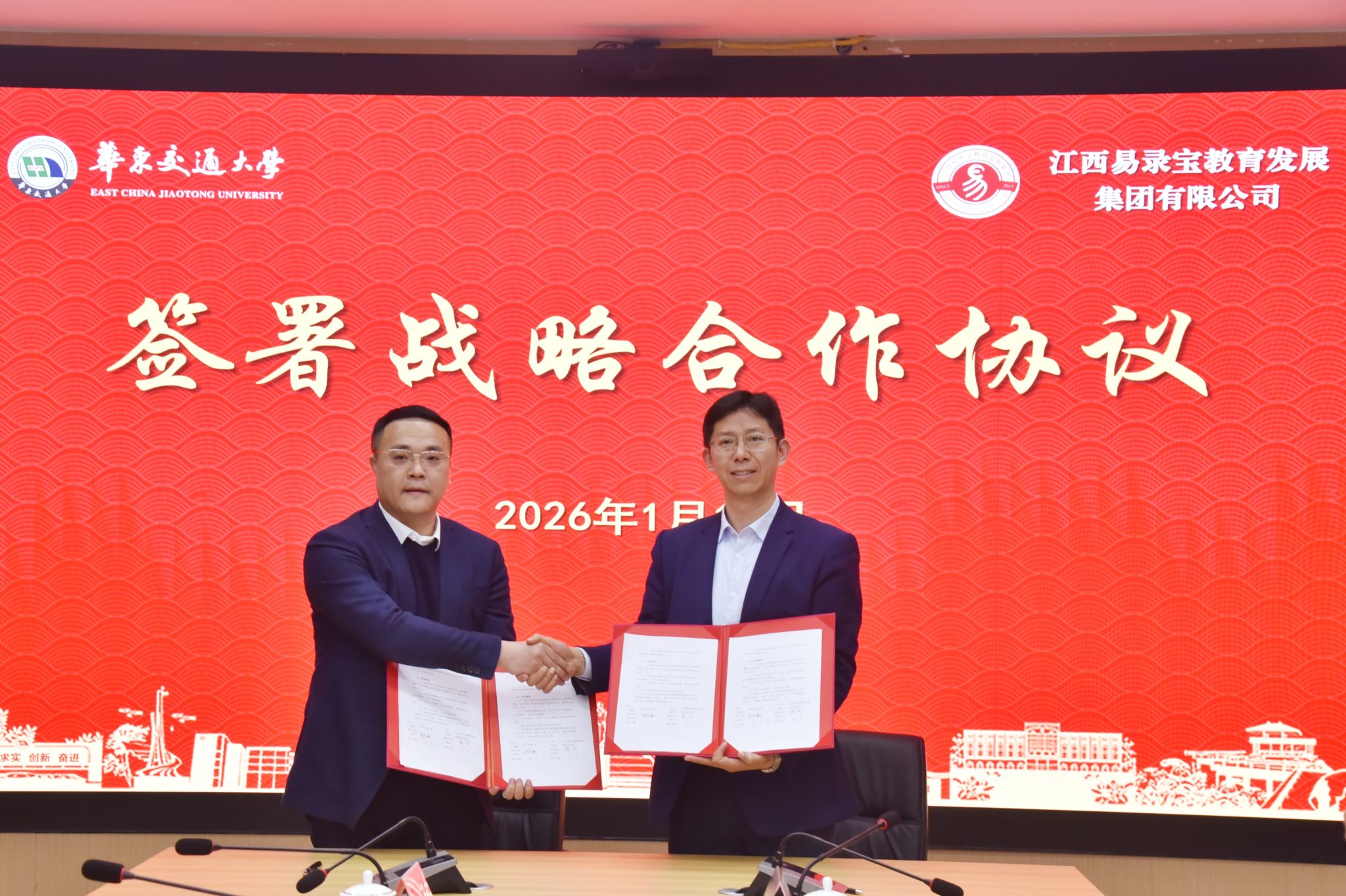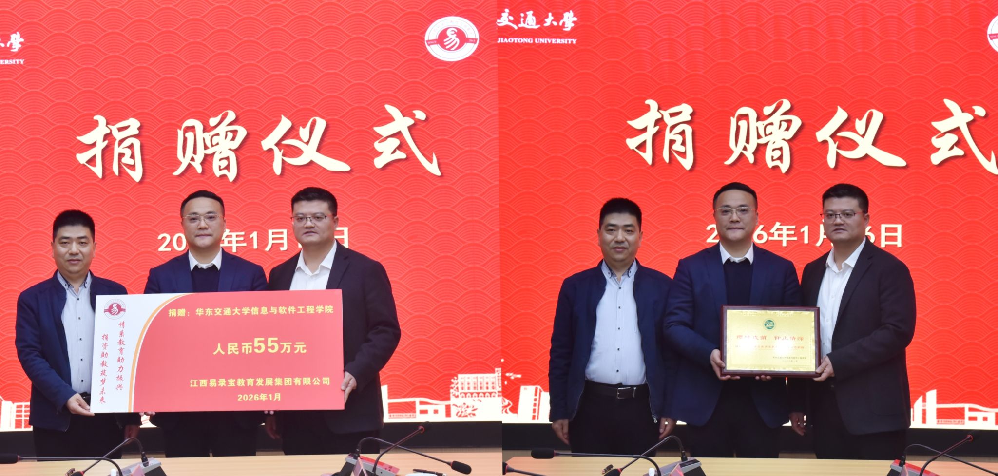 1月16日下午,我校与江西易录宝教育发展集团有限公司(以下简称“易录宝教育集团”)举行战略合作协议签署暨学校五十五周年校庆捐赠仪式。校党委副书记、校长徐长节,校党委委员、副校长欧阳志刚、刘志敏,易录宝教育集团董事长徐凡等出席仪式。