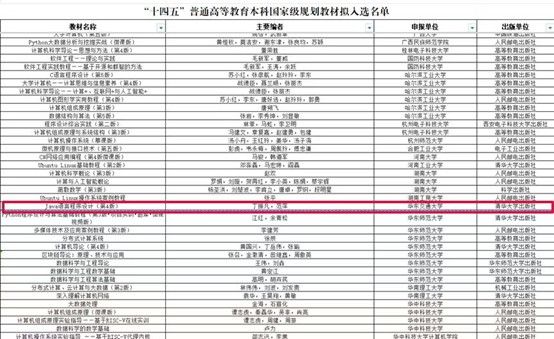 近日,教育部公布“十四五”普通高等教育本科国家级规划教材拟入选名单,我校信息与软件工程学院丁振凡教授主编的教材《Java语言程序设计(第4版)》成功入选。