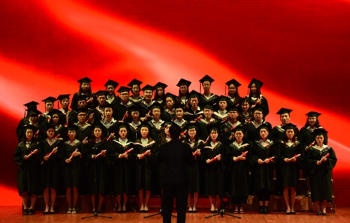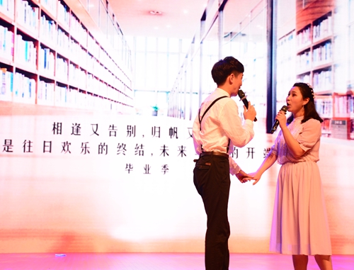 6月5日晚,经管学院举行2017届毕业生晚会。副校长张玉清出席,为优秀毕业生扶正流苏。