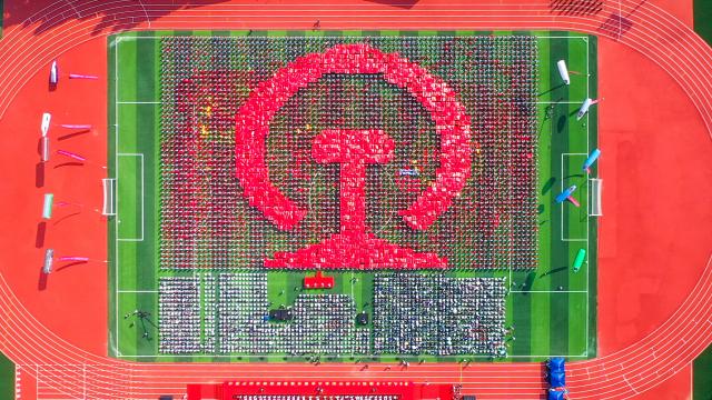 《星辰大海》《二十年后来相会》《赞赞新时代》《青春畅想》……大会开始前,4000名2021级大一新生组成4个巨型方阵,共同唱响昂扬奋进的青春旋律。在万众欢呼中,“贵赣情 f 校友行”千里接力“风火轮”跑团,与各地校友代表和师生代表,豪迈地迈进大会现场。伴随着热情铿锵的青年学生献词,巨型方阵变换成中国共产党成立100周年庆祝活动标识、中国地图、中国铁路路徽等图案或字样,彰显了全体华交人铁心跟党走、铁肩担使命的赤诚与担当。