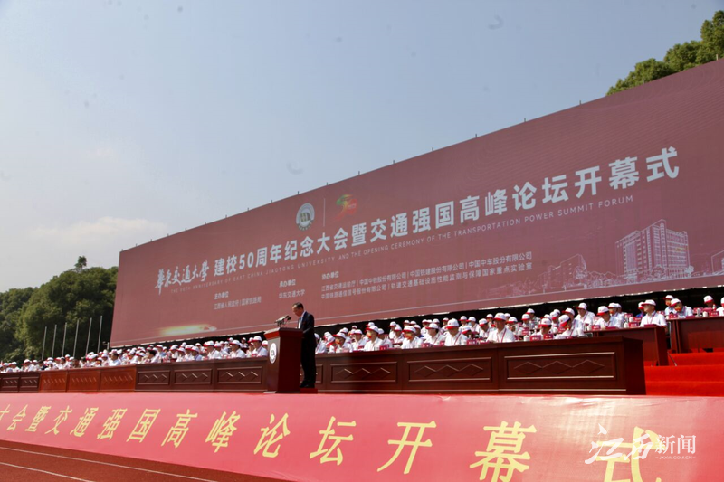 巍巍交通学府锦瑟壮,悠悠五秩春秋桃李芳。9月19日上午,华东交通大学建校50周年纪念大会暨“交通强国”高峰论坛开幕式在该校南区田径场隆重举行。