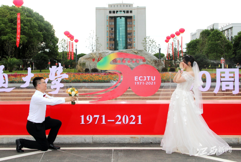 校友是母校永远的牵挂,母校是校友永远的家园。9月20日上午,在华东交通大学,来自全国各地的50对校友伉俪重返校园,齐聚孔目湖畔,举行校友集体婚礼,用别样温情的方式讲述华交爱情,共庆母校五十华诞。该校党委书记柳和生,省政协常委、经济委员会副主任、校友总会会长万明,校党委副书记肖长春,校党委委员、副校长罗文俊出席。