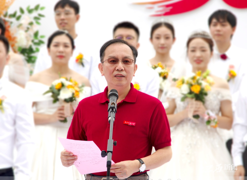 部分校友恩师、全国各地校友代表及在校师生代表共同见证集体婚礼仪式。(曾芳香、朱静、王科星)