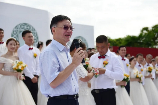 校友是母校永远的牵挂,母校是校友永远的家园。9月20日上午,在华东交通大学,来自全国各地的50对校友伉俪重返校园,齐聚孔目湖畔,举行校友集体婚礼,用别样温情的方式讲述华交爱情,共庆母校五十华诞。该校党委书记柳和生,省政协常委、经济委员会副主任、校友总会会长万明,校党委副书记肖长春,校党委委员、副校长罗文俊出席。