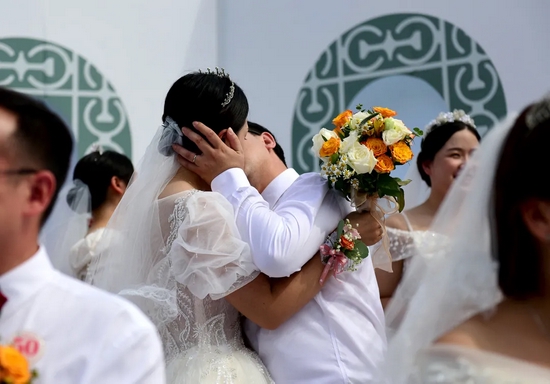 部分校友恩师、全国各地校友代表及在校师生代表共同见证集体婚礼仪式。(通讯员:曾芳香、朱静、王科星)