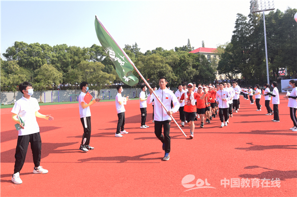 金秋的孔目湖畔碧波荡漾,草木葳蕤,校园里处处洋溢着青春、喜庆和欢乐。崭新的南区田径场,流光溢彩,旌旗飘扬。主席台前大会会标熠熠生辉,巨幅“复兴号”高铁喷绘和“动车组”热气球上,“坚定扛起为党育人为国育才使命重任,努力培养担当民族复兴大任时代新人”“以铁的精神、铁人作风、铁军特质,全面建设特色鲜明的高水平大学”等标语格外醒目。