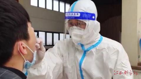 江南都市报讯全媒体记者高译丹摄影报道:3月21日,在华东交通大学第三轮核酸检测采集现场,一首《我和我的祖国》在空中奏响,悠扬的琴声舒缓了疫情下医护人员和在校师生紧张的情绪,为依然坚守在一线岗位的工作人员带来温馨的气氛。不仅如此,该校还为每个完成核酸检测的同学发放了一张带有华交标志风景图的贴纸,憨态可掬的玩偶手持小喇叭在现场引导师生保持安全距离,用属于一所理工院校的独特浪漫,为抗击疫情交上了一份“华交答卷”。