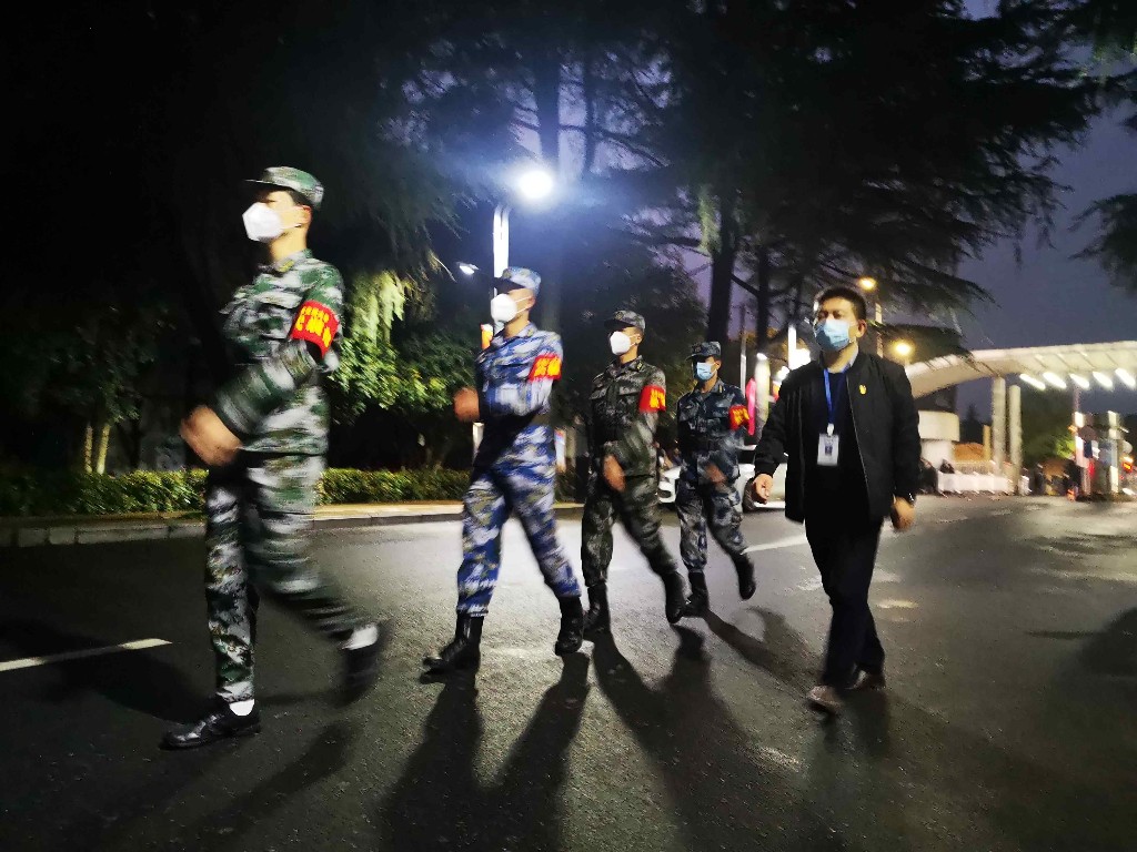 “没有问题,保证完成任务!”保卫处青年党员突击队又一次喊出了出征誓言,伴着夜色奔赴“战场”。疫情突发以来,武装保卫党支部以“全国党建工作样板支部”使命担当为引领,坚持“守住一扇门,守护一校人”,支部全体党员24小时轮岗值班,带领保卫人员守住校门“关键点”;组建全校退役大学生士兵先锋队,与国旗护卫队一同巡查值守在校园围墙薄弱处,以温暖身躯筑牢校园疫情防控“屏障线”;成立以支部成员为主体的青年党员突击队,在家属管控区、商户封管区等逐户排查,巩固拓展疫情防控“覆盖面”。