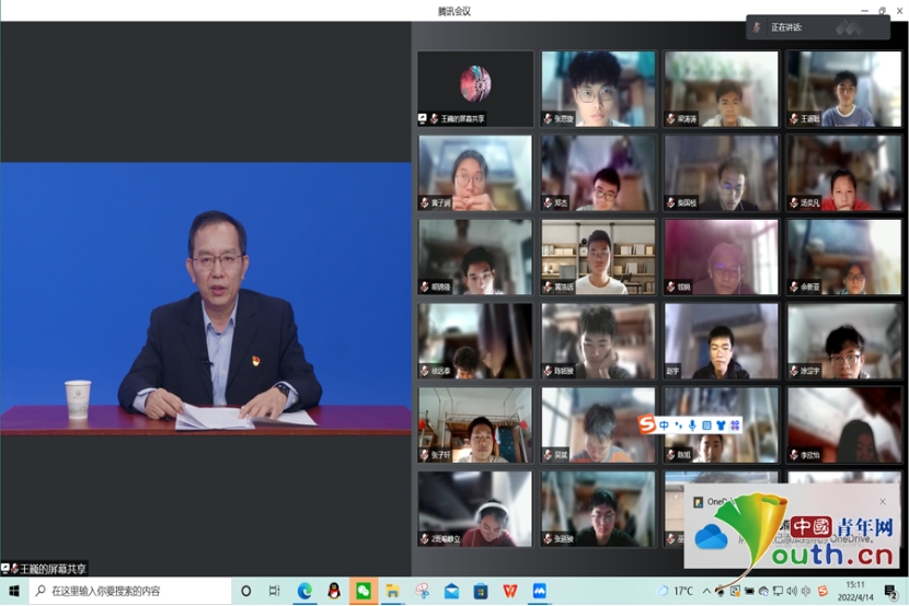 中国青年网南昌4月16日电4月14日,华东交通大学近3万名师生在“云端”相聚,共上一堂疫情防控思政大课。课堂上,该校党委书记柳和生用权威的数据和鲜活的案例,将全校师生“同心抗疫”的实践化作思政课的“源泉活水”,通过“云端思政课”引领学生在战“疫”中成长。