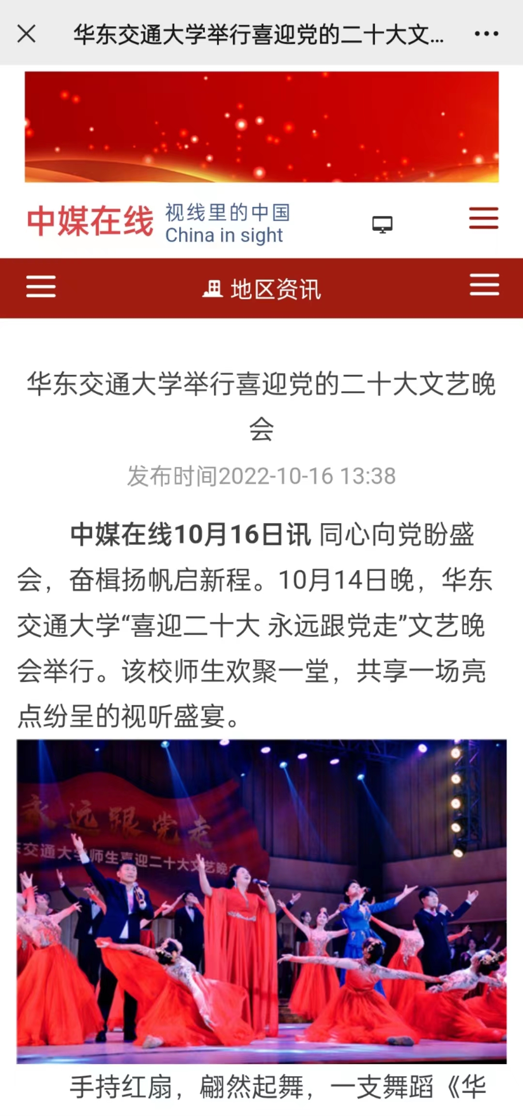 同心向党盼盛会,奋楫扬帆启新程。10月14日晚,华东交通大学“喜迎党的二十大 永远跟党走”文艺晚会举行。该校师生欢聚一堂,共享一场亮点纷呈的视听盛宴。