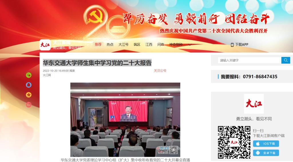 华东交通大学党委理论学习中心组(扩大)集中收听收看党的二十大开幕会直播