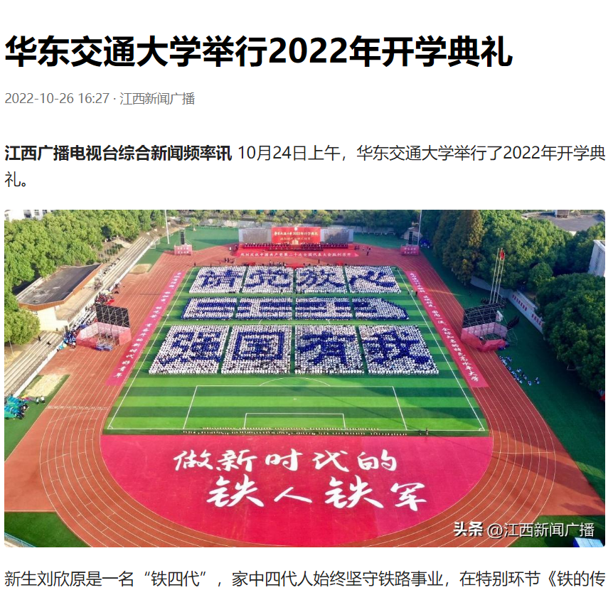 10月24日上午,华东交通大学举行了2022年开学典礼。