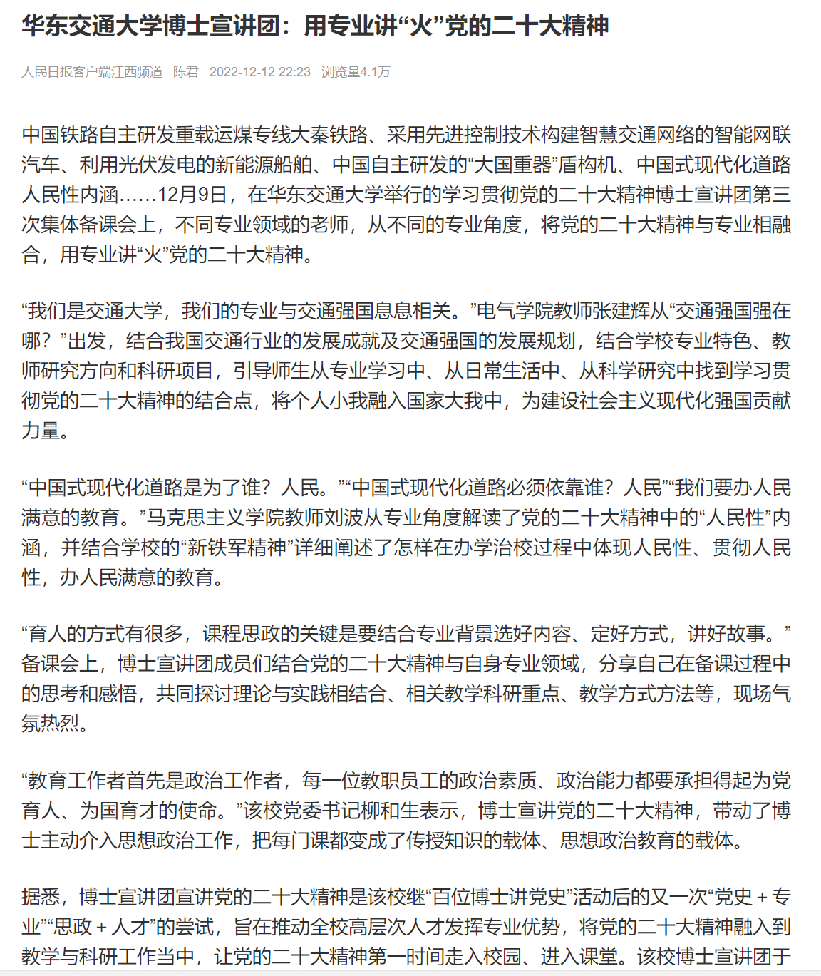 【人民日报客户端】华东交通大学博士宣讲团:用专业讲“火”党的二十大精神