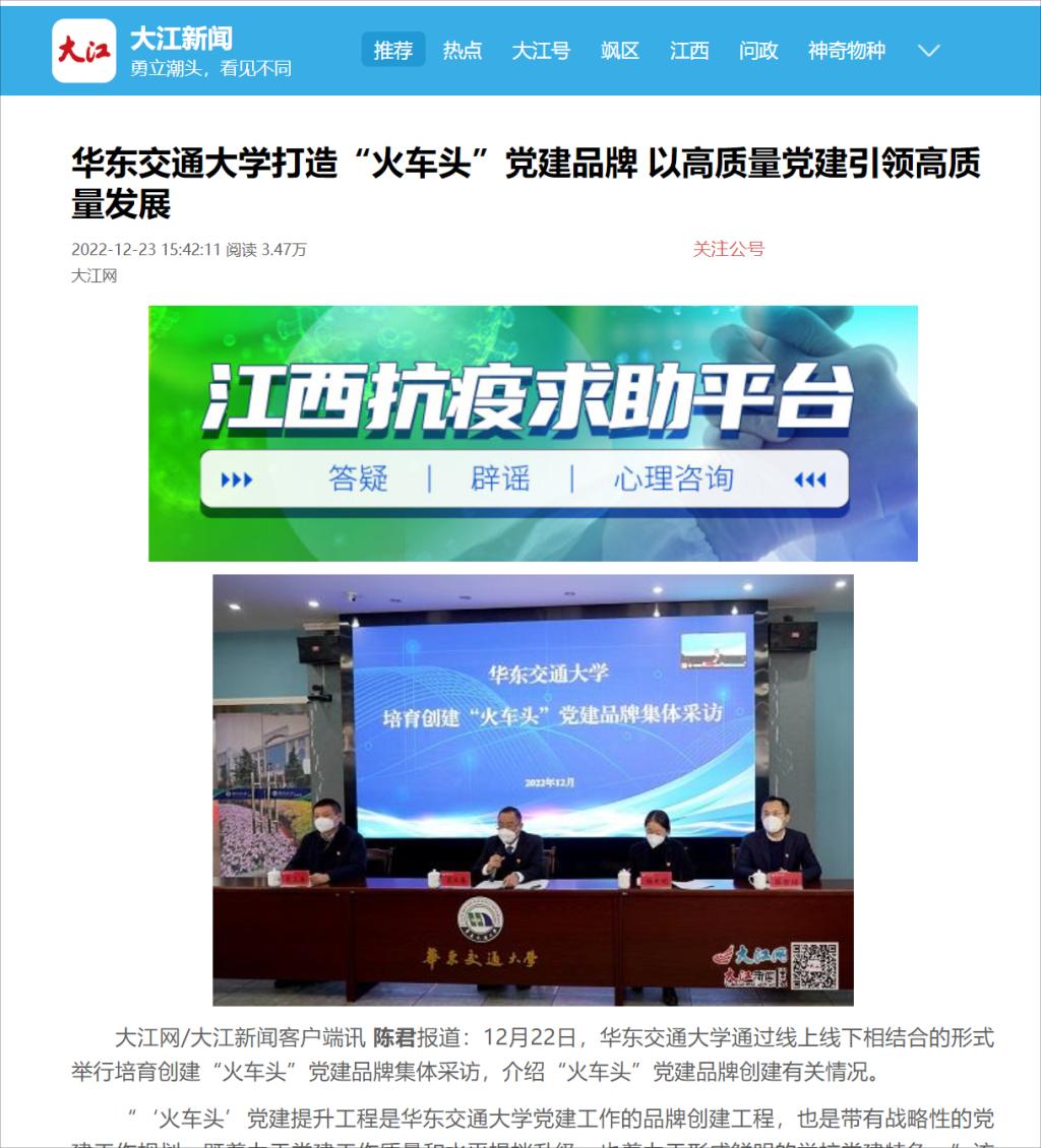12月22日,华东交通大学通过线上线下相结合的形式举行培育创建“火车头”党建品牌集体采访,介绍“火车头”党建品牌创建有关情况。