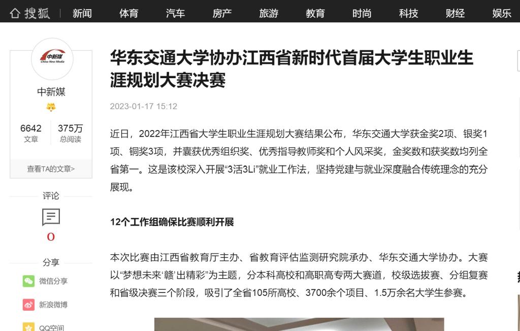 近日,2022年江西省大学生职业生涯规划大赛结果公布,华东交通大学获金奖2项、银奖1项、铜奖3项,并囊获优秀组织奖、优秀指导教师奖和个人风采奖,金奖数和获奖数均列全省第一。这是该校深入开展“3活3Li”就业工作法,坚持党建与就业深度融合传统理念的充分展现。