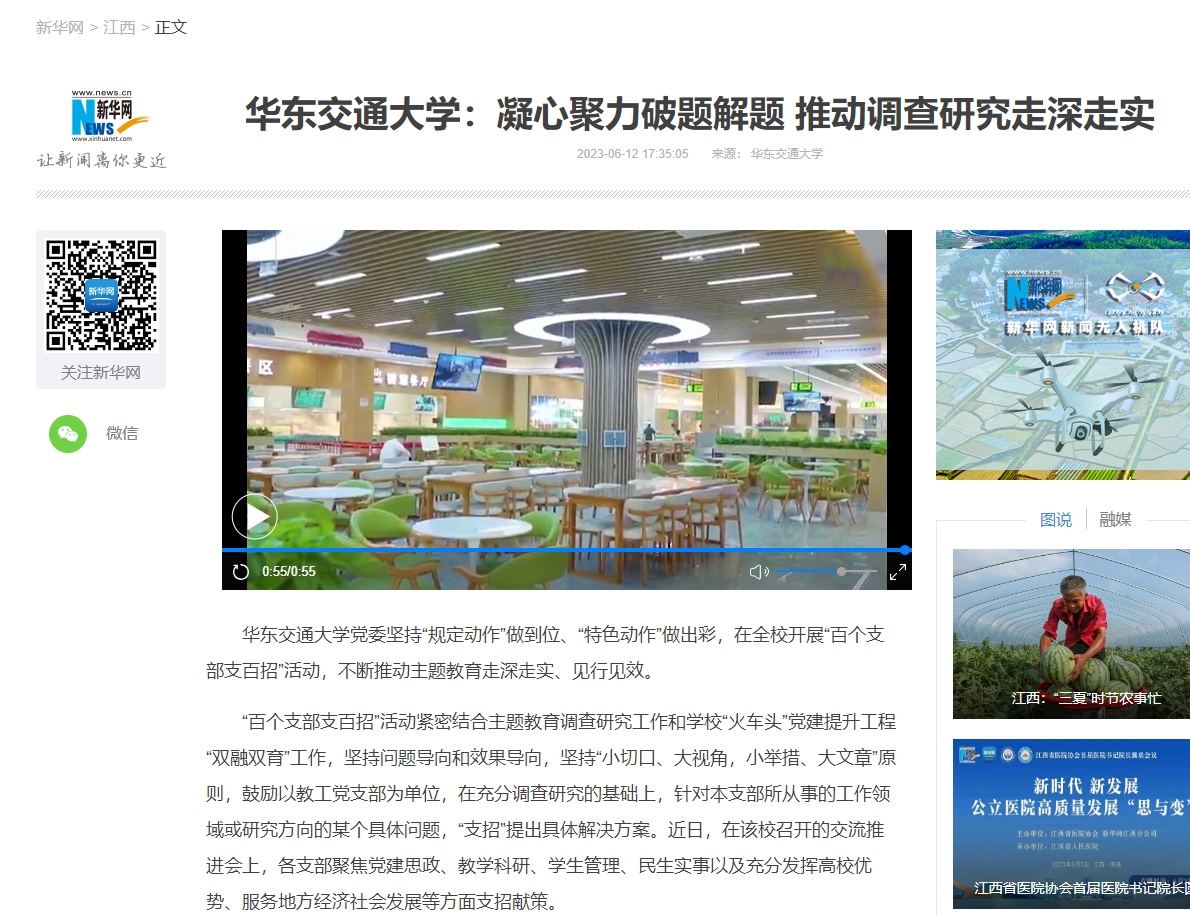 华东交通大学党委坚持“规定动作”做到位、“特色动作”做出彩,在全校开展“百个支部支百招”活动,不断推动主题教育走深走实、见行见效。