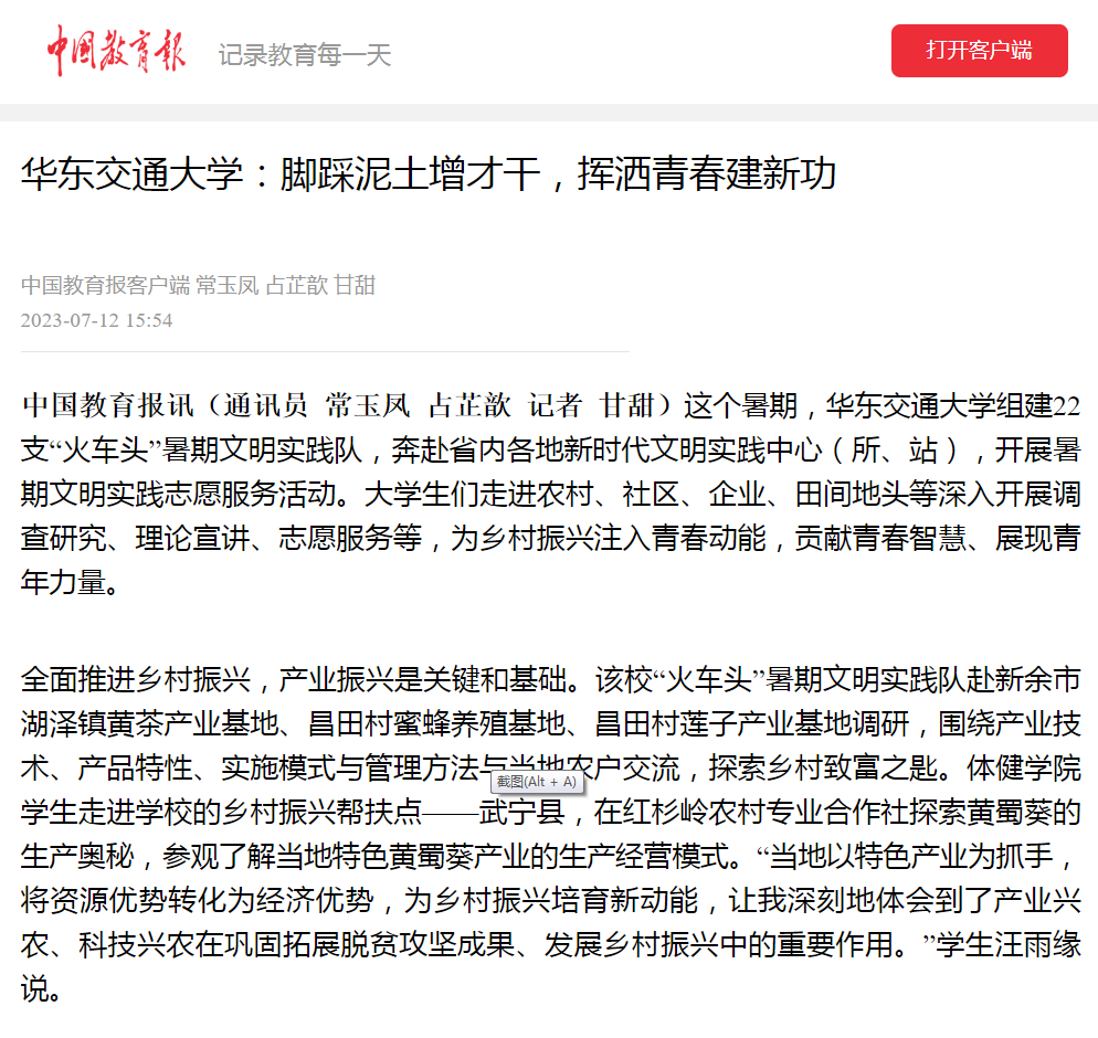 这个暑期,华东交通大学组建22支“火车头”暑期文明实践队,奔赴省内各地新时代文明实践中心(所、站),开展暑期文明实践志愿服务活动。大学生们走进农村、社区、企业、田间地头等深入开展调查研究、理论宣讲、志愿服务等,为乡村振兴注入青春动能,贡献青春智慧、展现青年力量。