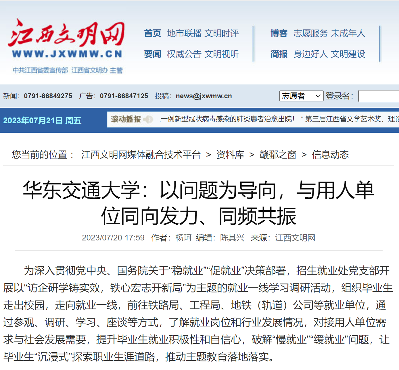 为深入贯彻党中央、国务院关于“稳就业”“促就业”决策部署,招生就业处党支部开展以“访企研学铸实效,铁心宏志开新局”为主题的就业一线学习调研活动,组织毕业生走出校园,走向就业一线,前往铁路局、工程局、地铁(轨道)公司等就业单位,通过参观、调研、学习、座谈等方式,了解就业岗位和行业发展情况,对接用人单位需求与社会发展需要,提升毕业生就业积极性和自信心,破解“慢就业”“缓就业”问题,让毕业生“沉浸式”探索职业生涯道路,推动主题教育落地落实。