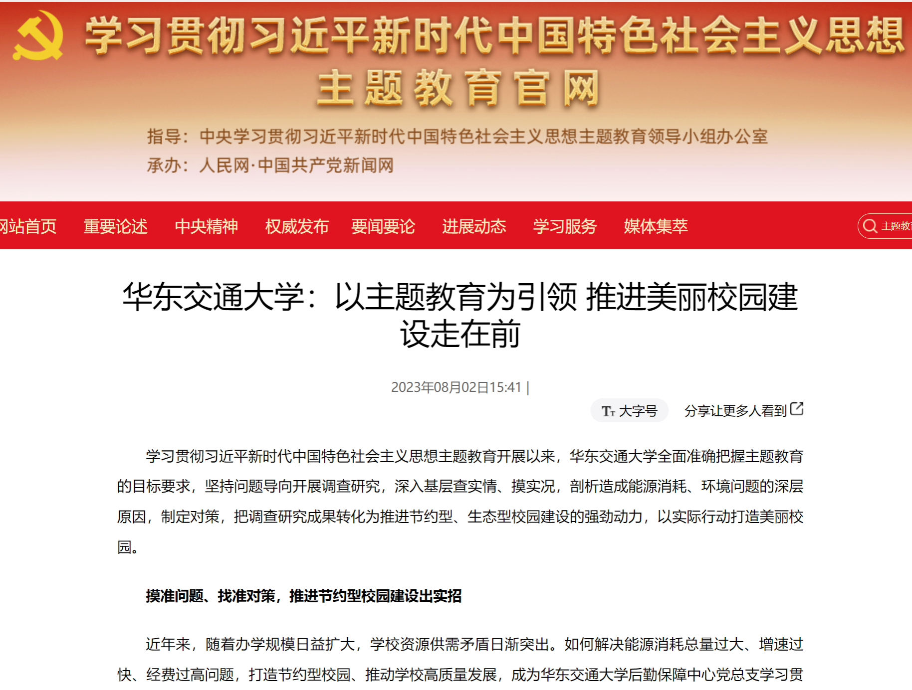学习贯彻习近平新时代中国特色社会主义思想主题教育开展以来,华东交通大学全面准确把握主题教育的目标要求,坚持问题导向开展调查研究,深入基层查实情、摸实况,剖析造成能源消耗、环境问题的深层原因,制定对策,把调查研究成果转化为推进节约型、生态型校园建设的强劲动力,以实际行动打造美丽校园。