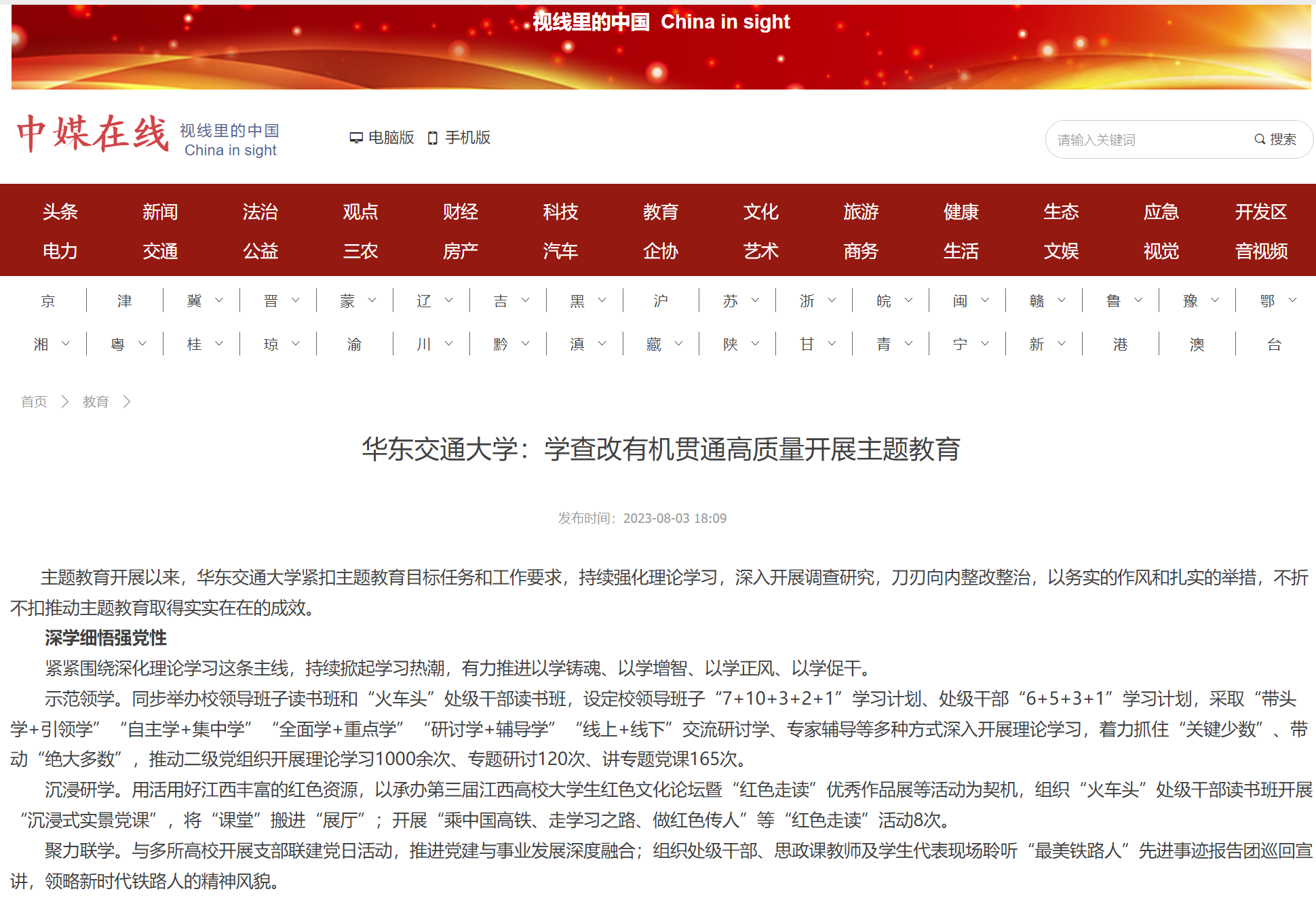 主题教育开展以来,华东交通大学紧扣主题教育目标任务和工作要求,持续强化理论学习,深入开展调查研究,刀刃向内整改整治,以务实的作风和扎实的举措,不折不扣推动主题教育取得实实在在的成效。