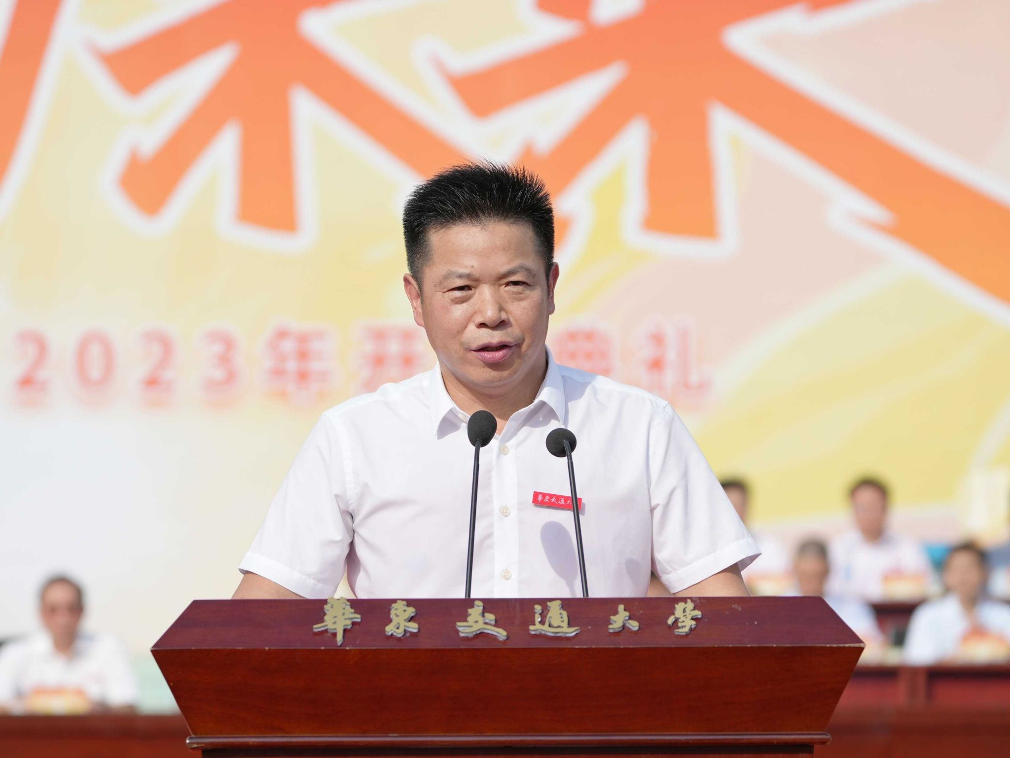 今天,我们在这里隆重举行华东交通大学2023级新生开学典礼,满心欢喜、充满期待地迎来了来自五湖四海的新同学。在此,我代表学校,向大家表示热烈的欢迎!