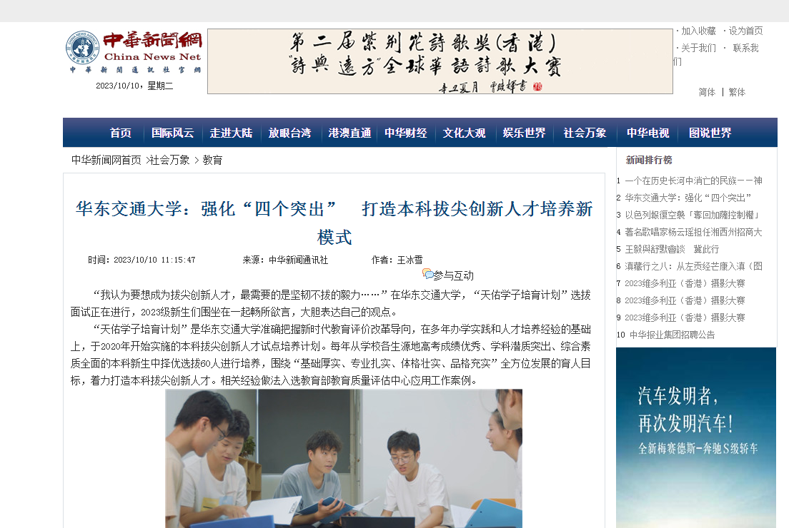拔尖创新人才培养是一项长期性、系统性的工程。学校始终将人才培养质量作为衡量立德树人实效的重要标尺,坚持做好顶层设计、统筹推进,形成了党委统一领导、党政齐抓共管、部门协同联动、院系共同推进的工作格局,解决了培养举措落实过程中专业间分离、院系间分隔、部门与院系间分治现象,实现了学校、院系、师生各个层面在思想上同心、在目标上同向、在行动上同行,为学生们的成长发展保驾护航。近日获评“全国大学生自强之星”的“天佑学子”何政毅说:“是学校不断创新的培养模式给我创造了成长发展的平台,我的梦想在这里扬帆启航,未来我将再接再厉,为建设科技强国贡献青春力量。”