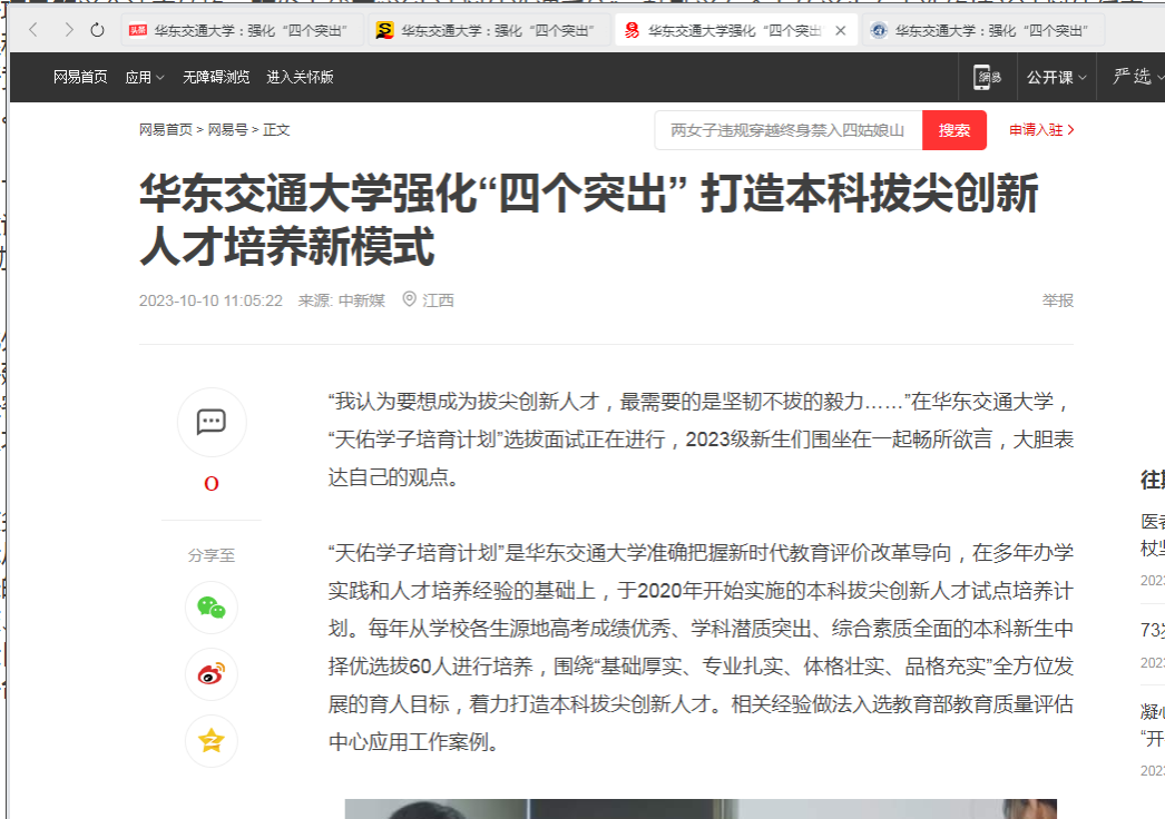 “天佑学子培育计划”是华东交通大学准确把握新时代教育评价改革导向,在多年办学实践和人才培养经验的基础上,于2020年开始实施的本科拔尖创新人才试点培养计划。每年从学校各生源地高考成绩优秀、学科潜质突出、综合素质全面的本科新生中择优选拔60人进行培养,围绕“基础厚实、专业扎实、体格壮实、品格充实”全方位发展的育人目标,着力打造本科拔尖创新人才。相关经验做法入选教育部教育质量评估中心应用工作案例。