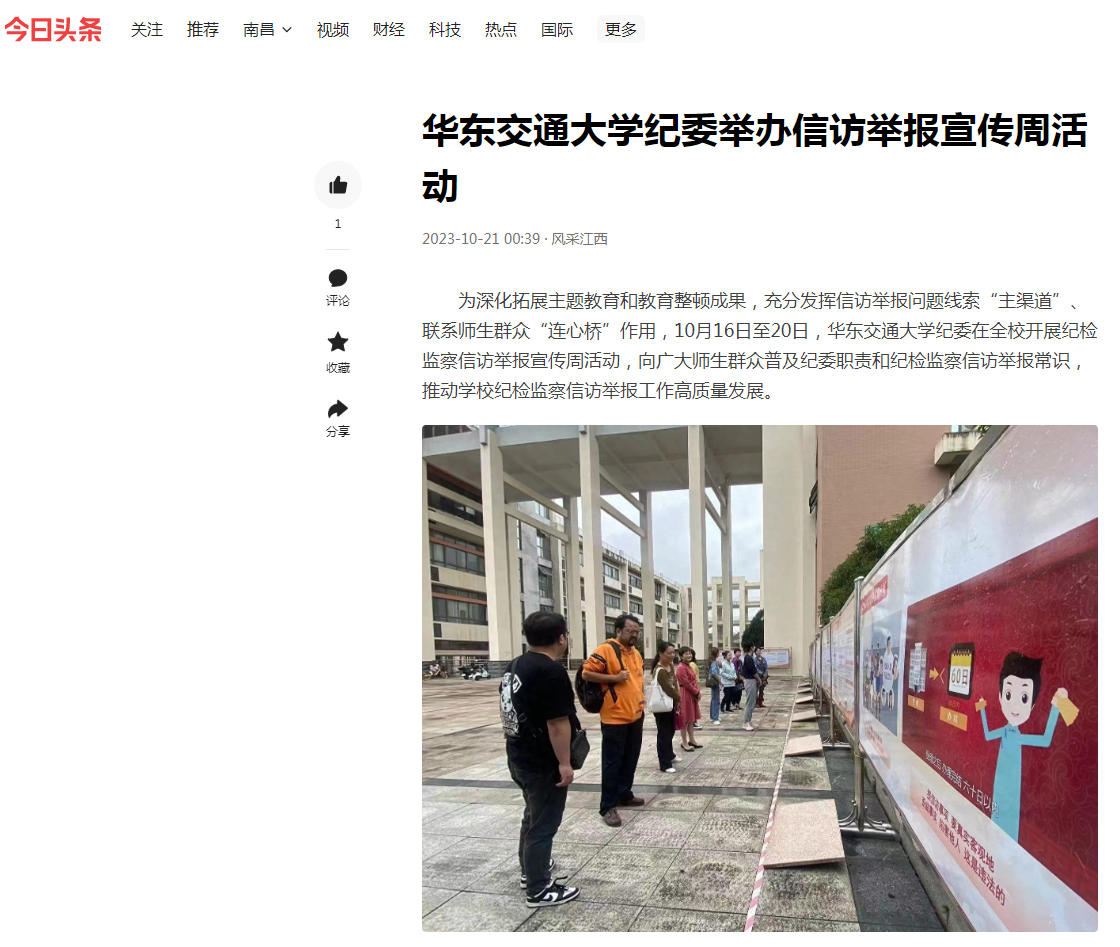 据悉,该校纪委连续一周在校内主干道上设立了现场宣传接访点,制作发放了3000余份信访举报指南。全校各基层党组织开展了《信访工作条例》和《纪检监察机关检举控告规则》的集中学习。各二级党组织依托自有宣传平台,结合单位实际积极开展信访举报知识宣传教育,不断提升宣传实效。