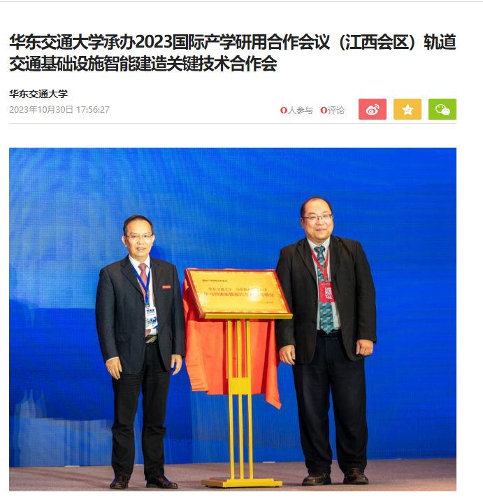 会上,华东交通大学与来自俄罗斯、马来西亚、阿联酋、新西兰等的国内外院校、研究机构和中铁七局等企业举行了联合实验室揭牌和合作协议签署。英国利兹大学、阿联酋大学、马来西亚拉曼大学、北京交通大学、中铁二院工程集团有限责任公司、西安理工大学、同济大学、华东交通大学等单位的9位知名专家聚焦轨道交通基础设施智能建造关键技术作主题报告,并结合自身工作实践和科研经历,展示了轨道交通基础设施智能建造领域最新成果。