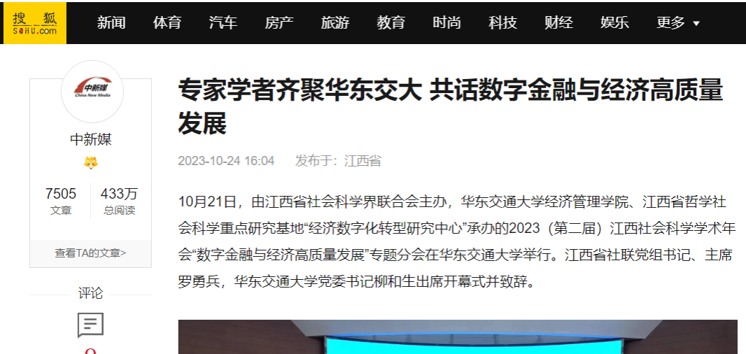 10月21日,由江西省社会科学界联合会主办,华东交通大学经济管理学院、江西省哲学社会科学重点研究基地“经济数字化转型研究中心”承办的2023(第二届)江西社会科学学术年会“数字金融与经济高质量发展”专题分会在华东交通大学举行。江西省社联党组书记、主席罗勇兵,华东交通大学党委书记柳和生出席开幕式并致辞。