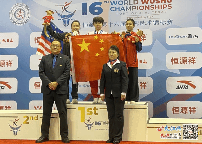 据悉,刘鑫是该校“火车头”武术队队员,曾多次代表学校在全国赛事中取得佳绩。今年9月,她被国家体育总局武术运动管理中心选调至国家武术套路队备战本届世锦赛。集训中她勤奋努力、刻苦认真,赛场上她沉着稳健、发挥出色,勇夺桂冠,在国际的舞台上展现出了华东交通大学学生铁人铁军的铁血作风和为国争光、昂扬向上的精神风貌,为国家、学校争得了荣誉。这也是她继2021年获得第十四届全运会金牌后,又一次斩获武术项目重要赛事的金牌。