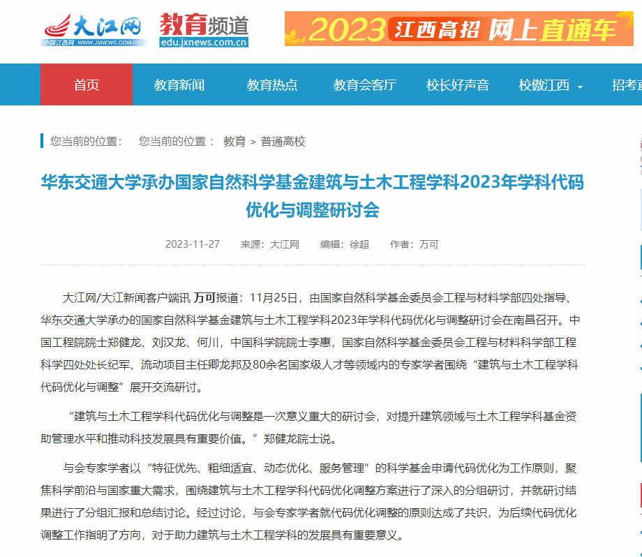 【大江网】华东交通大学承办国家自然科学基金建筑与土木工程学科2023年学科代码优化与调整研讨会