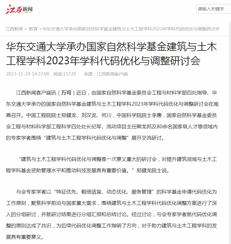 【江西新闻】华东交通大学承办国家自然科学基金建筑与土木工程学科2023年学科代码优化与调整研讨会