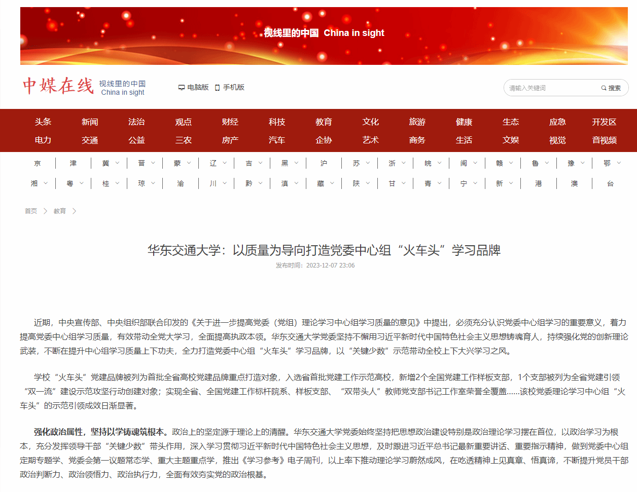 近期,中央宣传部、中央组织部联合印发的《关于进一步提高党委(党组)理论学习中心组学习质量的意见》中提出,必须充分认识党委中心组学习的重要意义,着力提高党委中心组学习质量,有效带动全党大学习,全面提高执政本领。华东交通大学党委坚持不懈用习近平新时代中国特色社会主义思想铸魂育人,持续强化党的创新理论武装,不断在提升中心组学习质量上下功夫,全力打造党委中心组“火车头”学习品牌,以“关键少数”示范带动全校上下大兴学习之风。