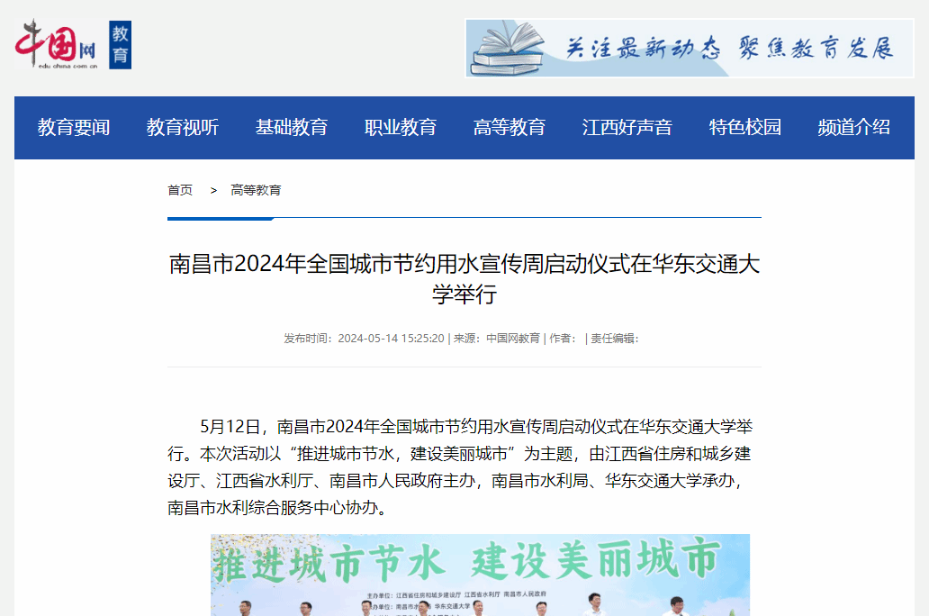 南昌市2024年全国城市节约用水宣传周启动仪式在华东交通大学举行