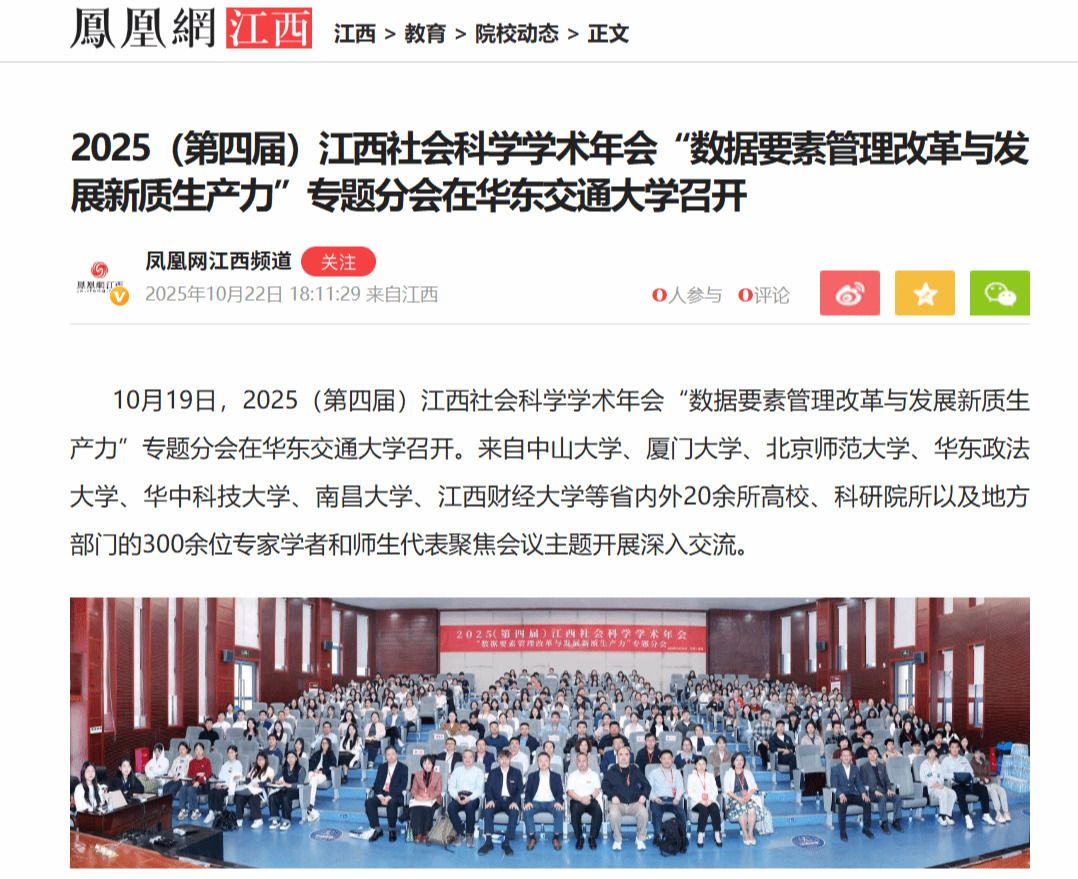【凤凰网江西】2025(第四届)江西社会科学学术年会“数据要素管理改革与发展新质生产力”专题分会在华东交通大学召开