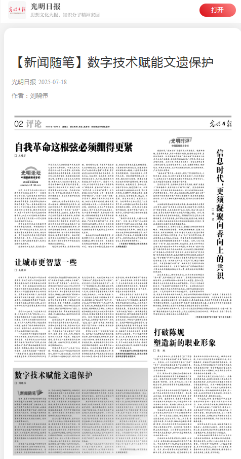 数字技术以动态监测、精准修复、数据管理和创新传承为支柱,为文化保护工程构建起全方位的科技屏障,让文化遗产在数字时代获得新的生命形态。只有坚持守正创新,将现代科技与传统文化深度融合,才能真正做到“在保护中发展、在发展中保护”,让那些源自历史深处的文化遗产能跨越时空,“活”在当下,并得以在未来弘扬与传承下去。