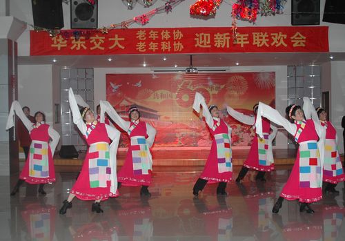 联欢会上,离退休老同志或引吭高歌,或翩翩起舞,歌声优美,舞姿曼妙,感情真挚,让观众沉浸其中,并博得掌声阵阵,体现了老同志们在学校党政的关怀下,“欣逢盛世晚景好”的幸福快乐生活。