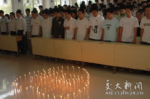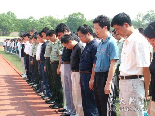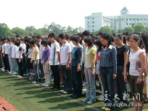 华东交大师生为四川汶川大地震遇难同胞默哀(图一)