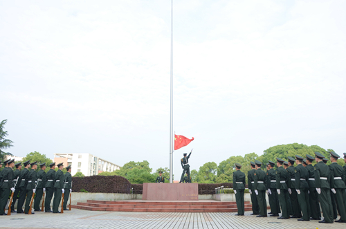 全体校领导、中层干部、国防生及部分师生代表参加升旗仪式。(摄/廖丝璐)