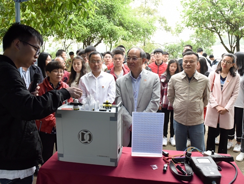 创新是青春最鲜明的底色。4月28日下午,机电与车辆工程学院举办五四科技展,纪念五四运动100周年。校党委书记万明到现场参观指导,点赞“学生很有创意,能学以致用”,并寄语新时代青年要传承五四精神,引领科技创新。校党委副书记肖长春一同观展。