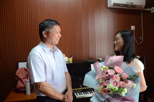 走访过程中,校领导关心教师们的工作和生活,充分肯定他们的突出业绩,鼓励中青年教师鼓足干劲、继续努力、再登新高。当天,正在教室授课的外语学院袁露老师,惊喜地收到来自学校的教师节礼物,并表示“非常感谢学校的关心,未来将会更加努力,在个人业务和课堂教学上更加精进。”